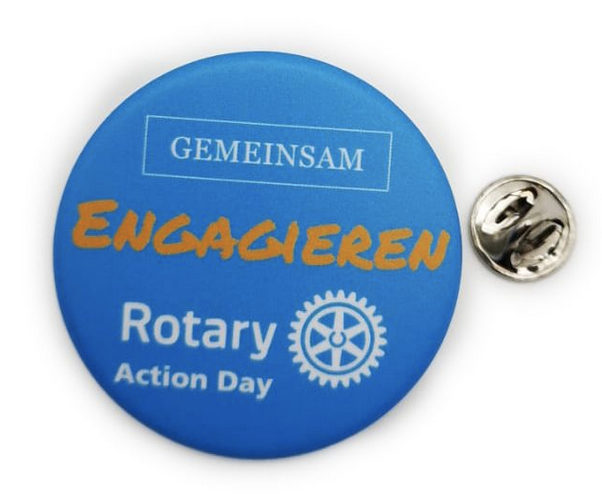 Ob Mitmach-Aktion, Spenden-Event oder gemeinsame Initiative: Die rotarische Familie bewegt viel und das soll bereits jetzt deutlich werden und sichtbar sein: Ordern Sie den Action-Day-Button (HIER) und werben Sie für Ihre Aktionen! Und zwar nicht nur am Action Day – er kann bei jeder Aktion getragen werden!