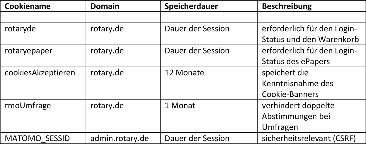 Als registrierte Benutzer können Sie sich unter „LOG IN" anmelden. Die Daten werden im Zuge der Mitgliedschaft verarbeitet. Rechtsgrundlage ist Art. 6 Abs. 1 lit b. DSGVO. Die Daten werden nur an Dritte weitergegeben, sofern es für den Vertragszweck erforderlich ist. Die Daten im Nutzerkonto werden so lange gespeichert, wie das Kundenkonto existiert. Zum Zweck der Authentifizierung und zentralen Verwaltung wird eine Verbindung zum eigenen Rotary-Single-Sign-On Server aufgebaut.
