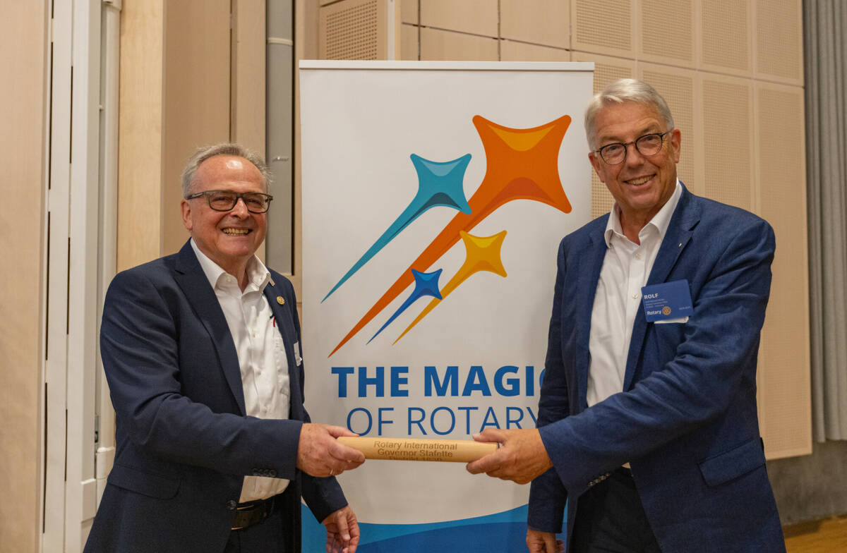 Mit der feierlichen Amtsübergabe an Rolf-Michael Müller (RC Nürtingen-Kirchheim) wurde zugleich der Staffelstab für das kommende Jahr weitergereicht.
