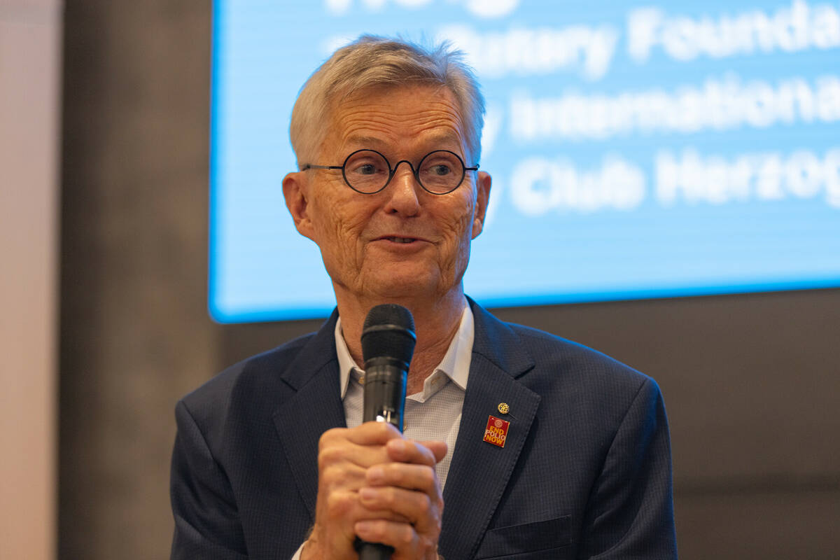 Past RI President Holger Knaack (RC Herzogtum Lauenburg-Mölln), designierter Trustee Chair 2025/26, präsentierte eindrucksvoll die weltweite Wirkung der Foundation und ihre Rolle im Dienst an der Menschheit.