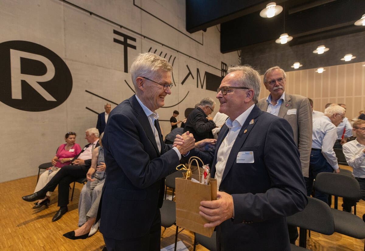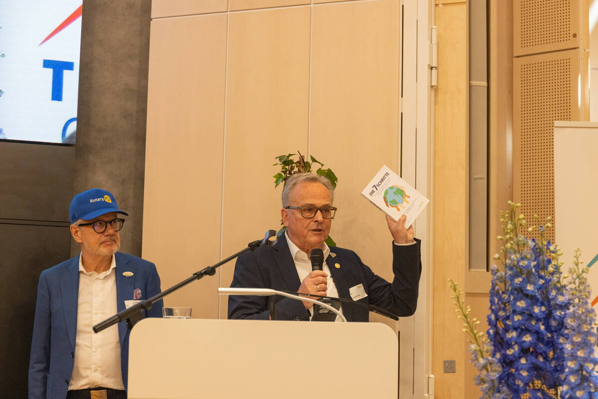 Klimawandel betrifft uns alle – und auch Rotary! Beim Vortrag von Ludwig Kalthoff (ESRAG - Environmental Sustainability Rotary Action Group – links) wurde deutlich: Der Klimawandel hat negative Auswirkungen auf alle sieben Schwerpunktbereiche von Rotary – von Gesundheit bis Frieden. Die gute Nachricht: Rotary kann und will etwas Positives bewirken! Im Distrikt 1830 gibt es bereits inspirierende Handprint-Projekte mit positiver Wirkung auf das Klima allerdings können das Bewusstsein für den Klimawandel und seine Bedeutung für Rotary weiter geschärft, fundiertes Wissen über Ursachen und Lösungen vermittelt und die sieben Schritte zum klimafreundlichen Club aktiv angegangen werden. Jeder Rotary Club kann hier Verantwortung übernehmen und Teil der Lösung sein.