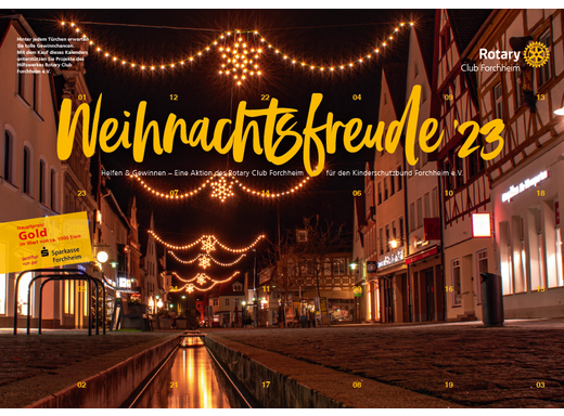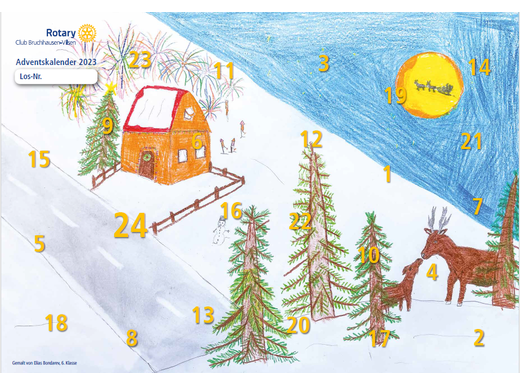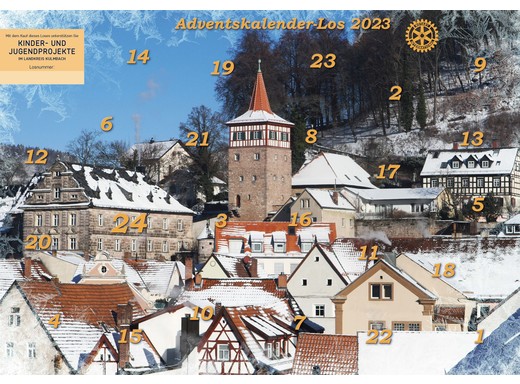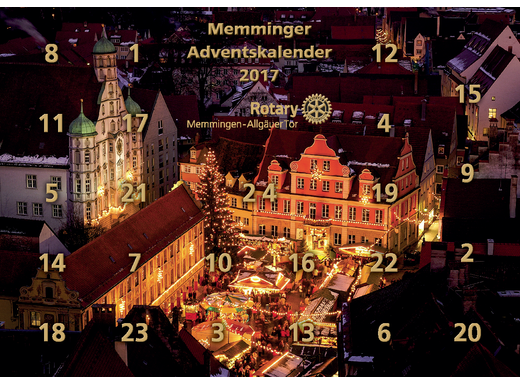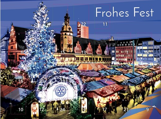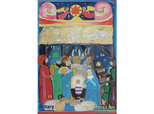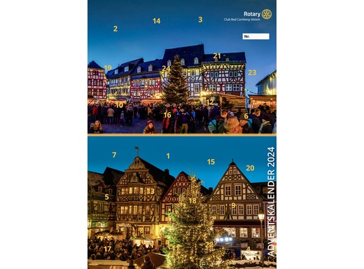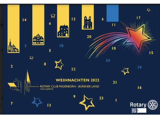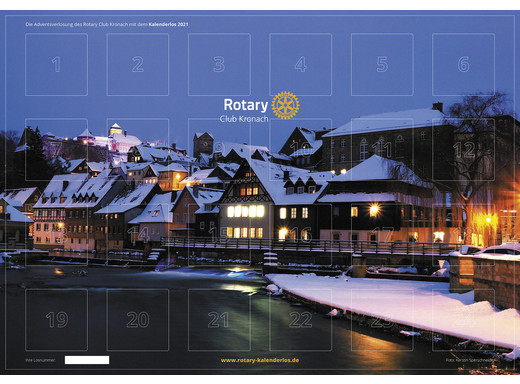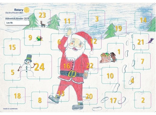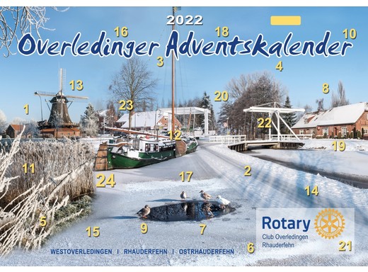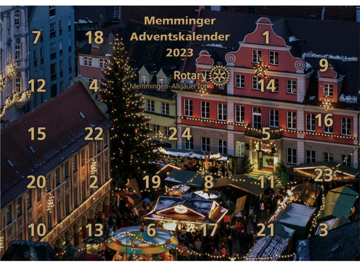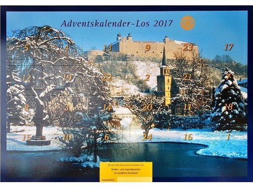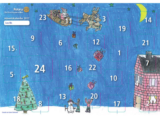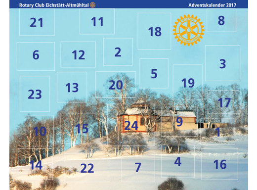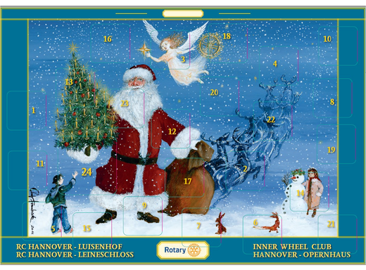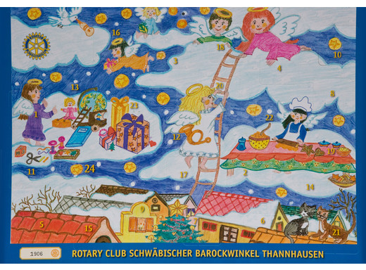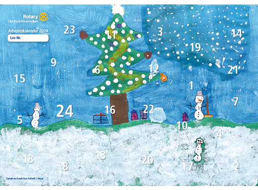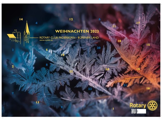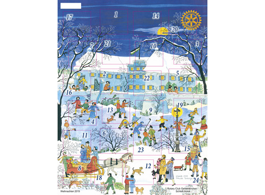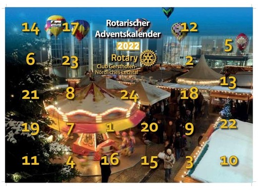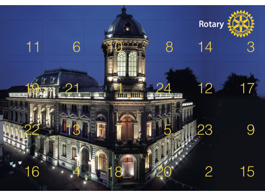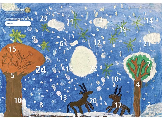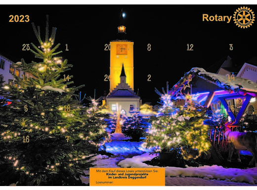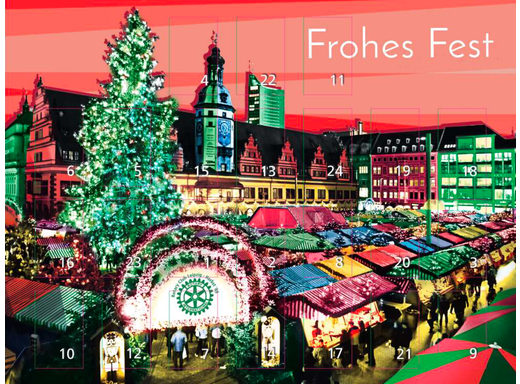 Viele Rotary und Rotaract Clubs erstellen und verkaufen — zum Teil gemeinsam mit Inner Wheel Clubs — auch in diesem Jahr wieder Adventskalender. Diese Aktion lässt sich langfristig gut organisieren und erfreut sich großer Beliebtheit. Hier finden Sie eine Auswahl der Kalender aus dem Jahr 2023 und einen Rückblick auf die Kalender 2017 bis 2023.