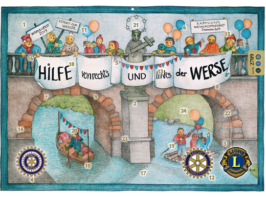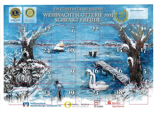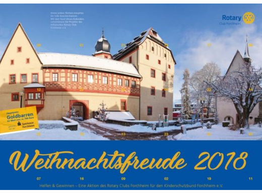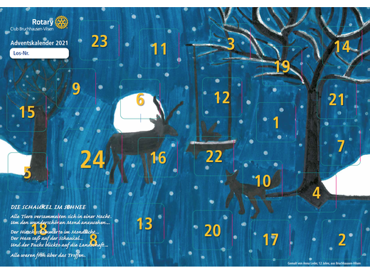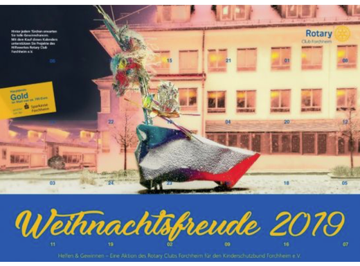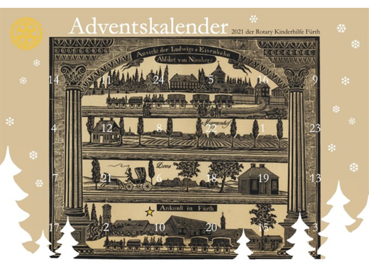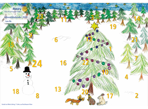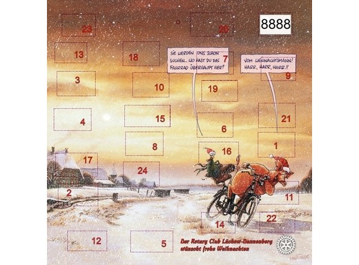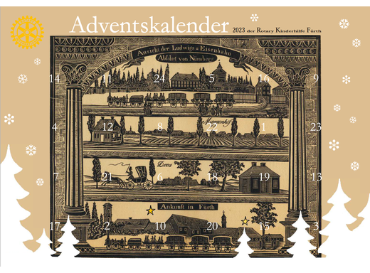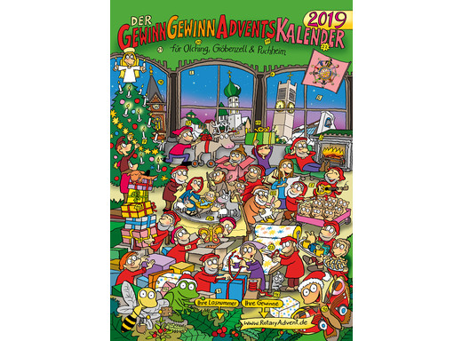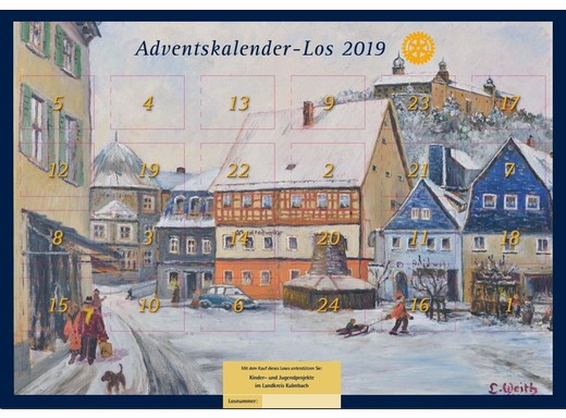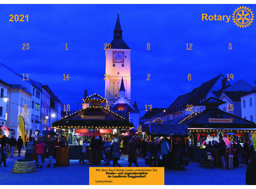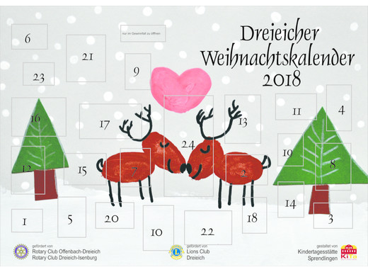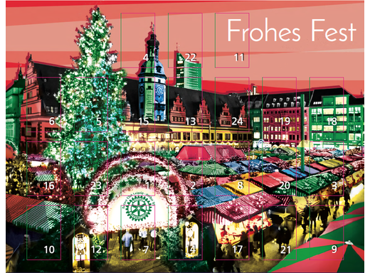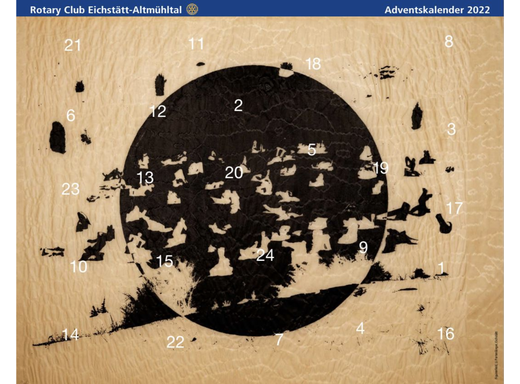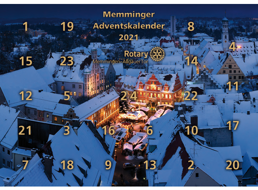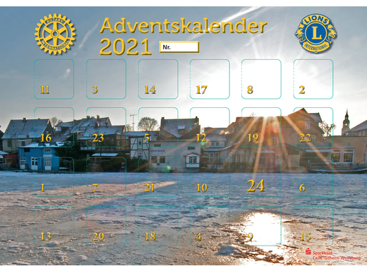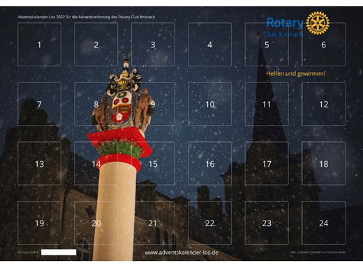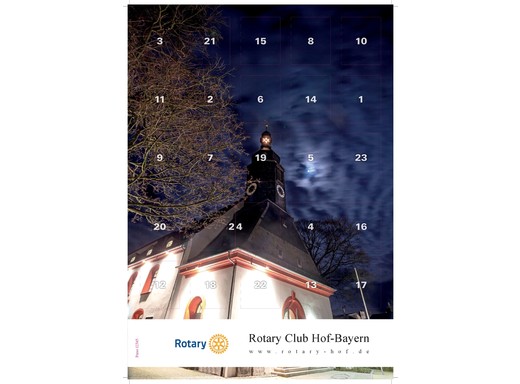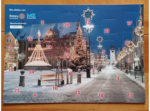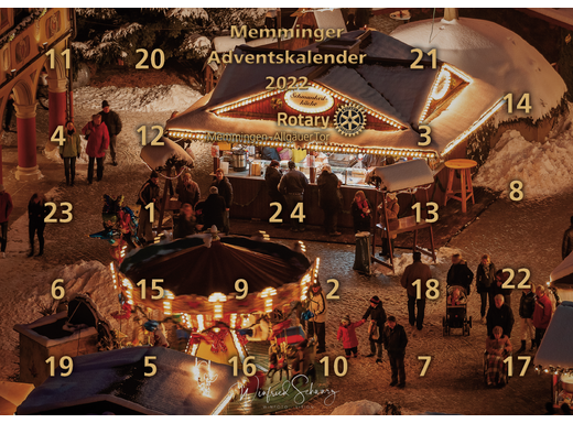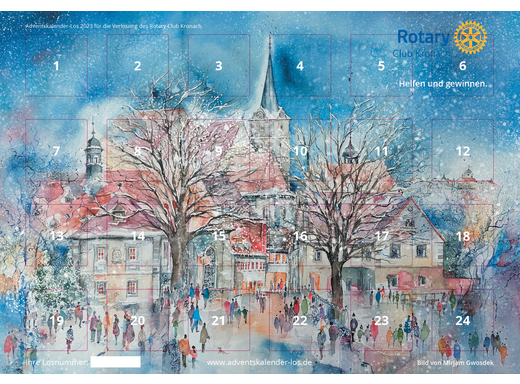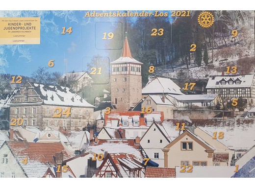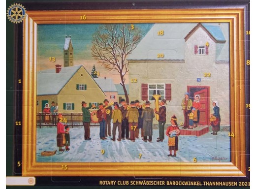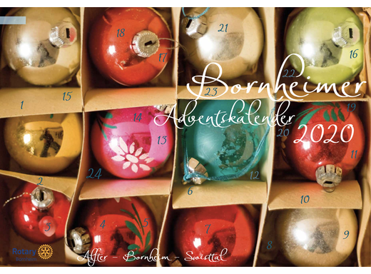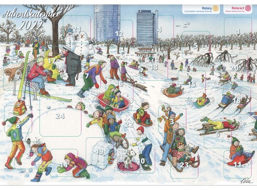 Viele Rotary und Rotaract Clubs erstellen und verkaufen — zum Teil gemeinsam mit Inner Wheel Clubs — auch in diesem Jahr wieder Adventskalender. Diese Aktion lässt sich langfristig gut organisieren und erfreut sich großer Beliebtheit. Hier finden Sie eine Auswahl der Kalender aus dem Jahr 2023 und einen Rückblick auf die Kalender 2017 bis 2023.