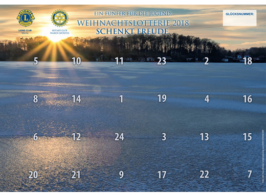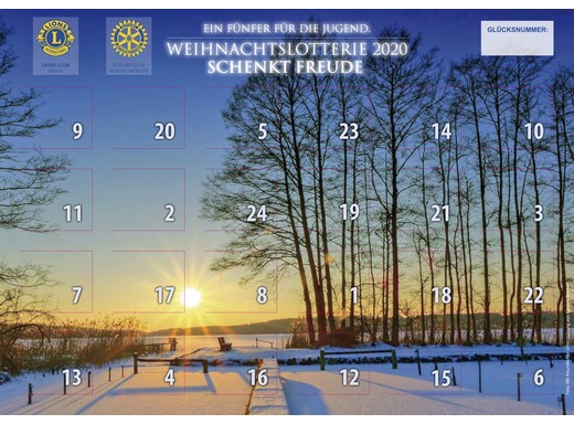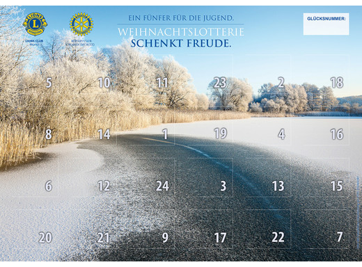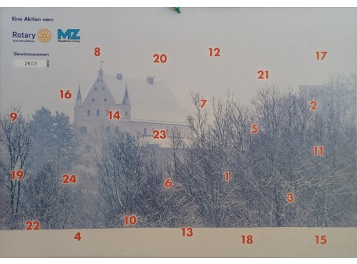 Um möglichst viele Ideen und Anregungen bieten zu können, brauchen wir auch die Angaben zum Adventskalender Ihres Clubs – als .jpeg-Datei (Bild) sowie die entsprechenden Eckdaten (Infos zu Anzahl, Gewinnen, Preis etc.). Die Adresse lautet: redaktion@rotary.de