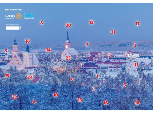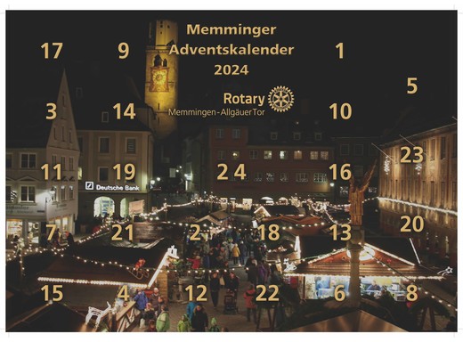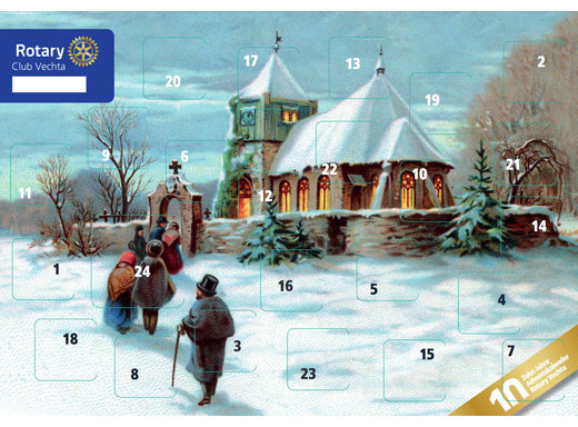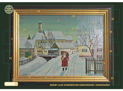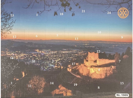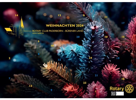 Viele Rotary und Rotaract Clubs erstellen und verkaufen — zum Teil gemeinsam mit Inner Wheel Clubs — auch in diesem Jahr wieder Adventskalender. Diese Aktion lässt sich langfristig gut organisieren und erfreut sich großer Beliebtheit. Hier finden Sie eine Auswahl der Kalender aus dem Jahr 2024 und einen Rückblick auf die Kalender 2017 bis 2024.