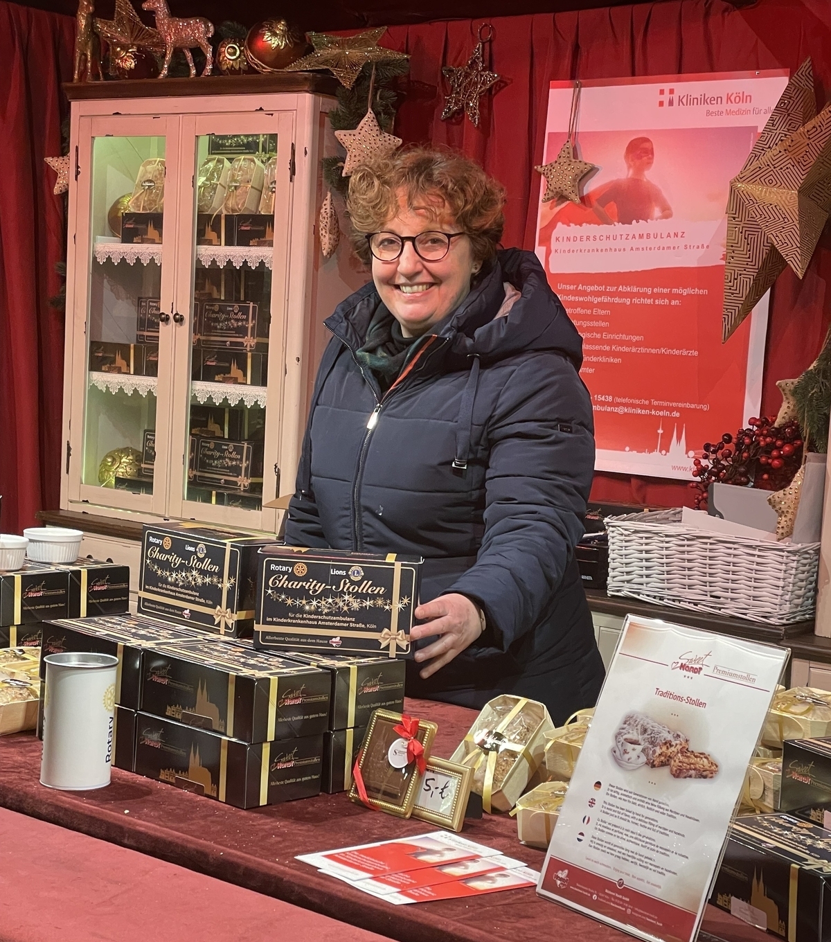 Leckermäuler finden diese Neuheit in der Naschgasse auf dem Kölner Heinzelmarkt - und spenden mit dem Kauf für die Kinderschutzambulanz an der Kinderklinik Amsterdamer Straße in Köln. Den Stand betreiben alle Kölner Rotary- und Lions-Clubs gemeinsam, auch die Rotaracter und die Leos sind mit von der Partie. Bis zum 23. Dezember stehen auch der Premium-Classic-Stollen der Bäckerei Hardt zum Verkauf.