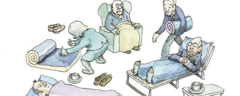Als Jungrotarier Wasserlos den Salon Hindenburg betrat, staunte er nicht schlecht. Einige Freunde waren dabei, Schlafsäcke zu entrollen, andere stellten Liegen auf oder bequeme Clubsessel. „Warum?“, fragte er Präsident Pröpke. Der meinte schulterzuckend: „Heute spricht Freund Schlunzbach. Seine Vorträge sind immer sehr lang, unter zwei Stunden macht er es nicht.“