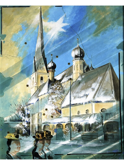 --> zeigt das Bildmotiv "Priener Weihnacht" – gemalt von Clubmitglied Walter Angerer d. J.