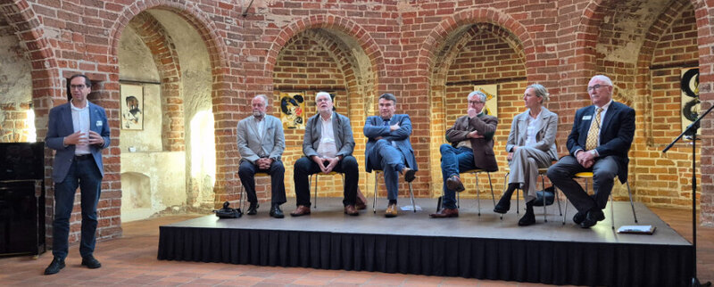 Beim gemeinsamen Abendessen kam es zu einem anregenden Gedankenaustausch und Kennenlernen zwischen dem RC Wesel-Dinslaken und dem RC Stendal. Dieser Gedankenaustausch wurde am zweiten Besuchstag bei einer Podiumsdiskussion in der Salzkirche fortgesetzt. Nach Grußworten der Präsidenten Klaus Gernert und Max Trapp übernahm Nils Ole Oermann vom RC Stendal, Direktor des Instituts für Ethik und transdisziplinäre Nachhaltigkeitsforschung an der Leuphana Universität Lüneburg, pointiert die Moderation des Podiums zum Thema "35 Jahre Deutsche Einheit – Quo Vadis?"