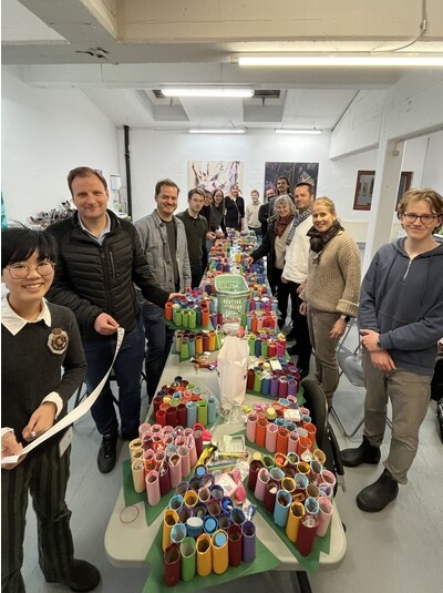 Es wurde fleißig gebastelt und geklebt – und das Ergebnis des letzten Jahres noch einmal übertroffen: 50 Adventskalender haben die Rotaracter in liebevoller Handarbeit hergestellt. Die Adventskalender entstehen – sehr nachhaltig – aus jeweils 24 Klopapierenrollen, die mit bunter Pappe ummantelt und auf eine tannenbaumförmige Pappe geklebt werden. Muffinförmchen bilden den Verschluss.