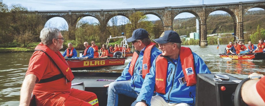 Als im Sommer 2021 in der Region Südwestfalen große Regenmassen schwere Verwüstungen angerichtet hatten, übernahm sofort danach der Rotary Club Hagen unter Federführung von Thomas Spruth für den Distrikt 1900 die Koordination der Spendengelder in der Vier-Flüsse-Stadt Hagen und Umgebung. 1,2 Millionen Euro kamen damals zusammen, die von einem Fluthilfe-Team sorgsam vergeben wurden. Über 3000 Stunden wurden eingesetzt, um Hunderte betroffene Familien, Kirchen und Vereine zu besuchen. Ein Teil ging auch in die Prävention und in den Katastrophenschutz. Nun konnten sieben handgefertigte Rettungsboote im Wert von 175.000 Euro an örtliche DLRG-Gruppen übergeben werden. Anders als bei Feuerwehr und THW wird die notwendige Ausstattung nicht aus Steuermitteln zur Verfügung gestellt. Die Finanzierung läuft über Mitgliedsbeiträge und Spenden.