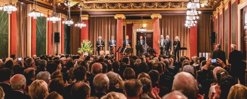 100 Jahre Rotary in Österreich: Dieses Jubiläum wurde in Wien gebührend gefeiert. Zum Auftakt der Veranstaltung spielte ein Ensemble der Wiener Philharmoniker. Der Brahms-Saal im Musikverein gab dazu den passenden, festlichen Rahmen. Unter der Leitung von Daniel Froschauer (RC Wien-Graben) erklang nach der Rotary Hymne von Franz Lehár das Septett Es-Dur op. 20 von Ludwig van Beethoven. Als Zugabe wurden die Glocken-Polka und Galopp von Joseph Hellmesberger jr. gespielt. Im Anschluss traf sich die Festgesellschaft im Vienna Marriott Hotel zum Get-together mit einem unterhaltsamen Programm, das einen Rückblick auf das vielfältige rotarische Engagement in den vergangenen 100 Jahren bot.