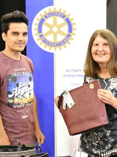 Mojib machte sich bald Gedanken über seine Zukunft in Österreich und will rasch selbst für seinen Lebensunterhalt sorgen. „Mein Asylverfahren läuft seit 2015. Diese Unsicherheit ist für mich sehr belastend, da war ich froh, mit meiner Selbstständigkeit auf eigenen Beinen stehen zu können“, so der junge Mann. Aber nicht nur er selbst ist seit zwei Jahren finanziell unabhängig, auch drei Familien in seiner Heimat Afghanistan können leben von der Produktion der Taschen und Shopper, die Mojib in Europa vertreibt. Hilfestellung kam zu Beginn von seiner Mentorin Bernadette. „Mojib hat Rafi kontaktiert, einen armen Familienvater, der in Kabul auf der Straße lebte. Er näht jetzt schöne und qualitativ hochwertige Shopper aus Restmaterial der Designindustrie“, so Prieschl stolz. Die erste Nähmaschine kaufte der Rotary Club, später auch noch eine zweite. Die sogenannten „Kabul-Bags“ werden seit 2018 in Afghanistan genäht und von Mojibullah in Österreich verkauft. Über diese Form der gelebten Entwicklungshilfe freut sich der RC Aisttal-Hagenberg sehr. Am meisten würden sich die Rotarierinnen und Rotarier aber über einen positiven Asylbescheid ihres Schützlings freuen. „Hätte ich Europa nicht gesehen, würde ich vielleicht auch wieder zurückgehen können“, fasst Mojibullah Satari seine ambivalenten Gefühle in der Zeit des Wartens in einen Satz.
