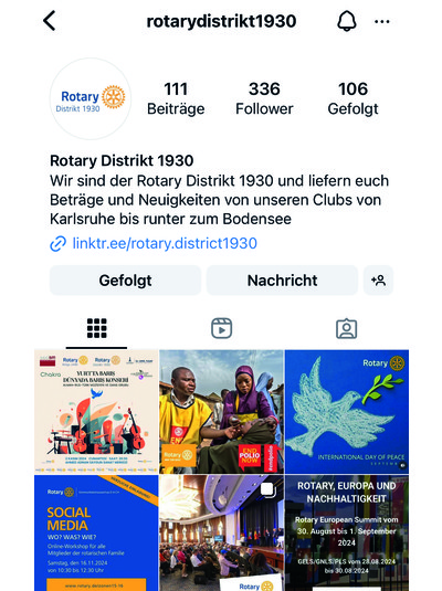 Social Media/Instagram: instagram.com/rotarydistrikt1930 – der Kanal verdient Follower, bitte liken und teilen! Ansprechpartnerin für Posts, die hier erscheinen sollen: Ulrike Vogt, ulrike.rotary@gmail.com