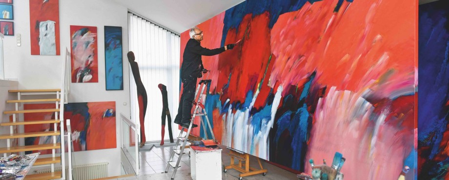 Der Deutsche Bundestag hat für seine Kunstsammlung das Bild „Genuss der Hitze“ von Künstler Mehmet Güler (RC Kassel) – hier bei der Arbeit im Atelier – erworben. Das Bild ist das erste Werk eines türkischstämmigen Künstlers, das in die Sammlung des Deutschen Bundestages aufgenommen wurde.