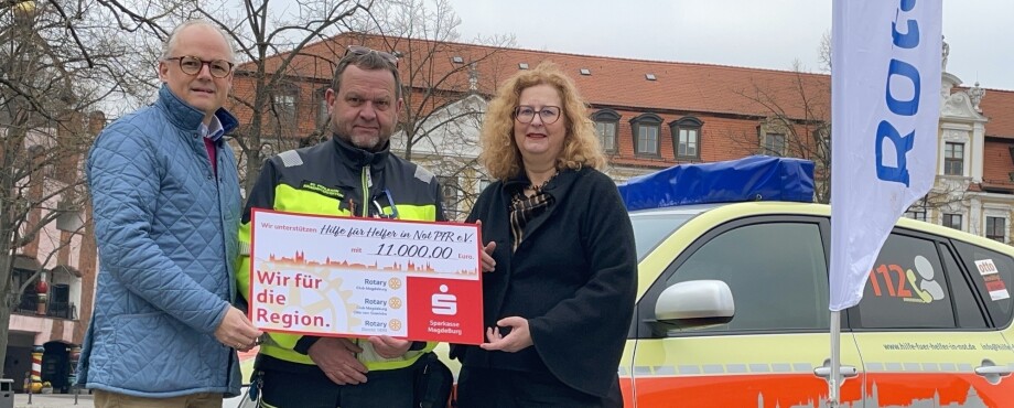 10.000 Euro leiten die Rotary Clubs an den Magdeburger Verein "Hilfe für Helfer in Not" weiter, weitere 1300 Euro gehen an die AGSA e.V. in Magdeburg zur Unterstützung eines indischen Studenten, der Opfer des Attentats wurde.