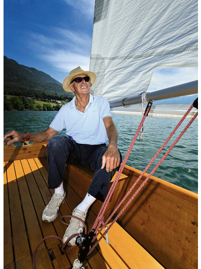 Der Mann sitzt auf der Terrasse vor seinem Haus und schaut hinunter ins Tal, auf den See. Auf „seinen“ See, den Wolfgangsee, dem er so vieles verdankt und den er heute noch so gerne mag. Er braucht den Blick aufs Wasser. Das war das Kriterium, nach dem er vor Jahrzehnten diesen Platz als Baugrund für sein Haus ausgesucht hat. Seit er in Pension ist, malt er, mit Acryl auf Hartfaserplatten, und fast immer sind es Landschaften mit Wasser, Küsten, Seen, Häfen. Kräftige Farben, fast wie Holzschnitte, streng nach Fotos, aber immer mit Wasser. Es lässt ihn nicht los. Warum auch? Wenn der Wind passt, geht er mit seiner Frau Gabi segeln. Begeistert, wie schon als Jugendlicher. Dann ist er wirklich in seinem Element, mitten in der Erfolgsgeschichte seines Lebens.