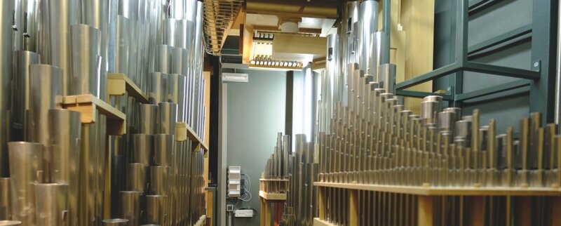 Anstelle von erwartungsvollen Zuschauern auf dem Weg zu ihrem Platz kurz vor Konzertbeginn herrscht in den Gängen zwischen den Zuschauerrängen geschäftiges handwerkliches Treiben. Lange Bahnen Abdeckvlies sind auf dem Gang ausgerollt. Hier und da liegen ausgebaute Orgelpfeifen auf dem Boden. Alles hat System, das der Laie nicht durchblickt. An gut gepolsterten Arbeitstischen reinigen Mitarbeiter der traditionsreichen Bonner Orgelbauwerkstatt Klais die Pfeifen aus Zinnlegierungen und Holz. Die kleinste misst elf Millimeter, die größte ist über zehn Meter lang und erstreckt sich über mehrere Ränge. In sechs Wochen soll alles fertig sein.
