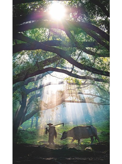 Göttliche Strahlen des Morgenlichts, die diese neblige Waldszene in Xiapu/China durchdringen, erwecken dieses Foto zum Leben. Die wunderschön gestapelte und geschichtete vertikale Komposition, in der sich die Hauptmotive perfekt von einer Schicht üppiger Bodenbedeckung abheben, ist eine durchdachte Art, alle Elemente zu nutzen und sie miteinander zu verbinden.