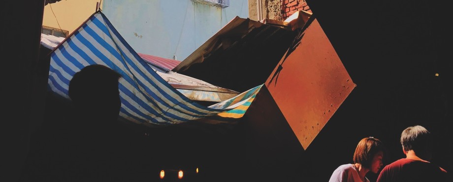 Ein meisterhafter Einsatz von Licht, Belichtung und Komposition ermöglichte es dem Fotografen, diese farbenfrohe, abstrakte Innen-Außen-Szene in Tainan/Taiwan darzustellen. Es ist ein geschickter Einsatz der Belichtung, der zeigt, wie unsere Augen diese Szene wahrnehmen.