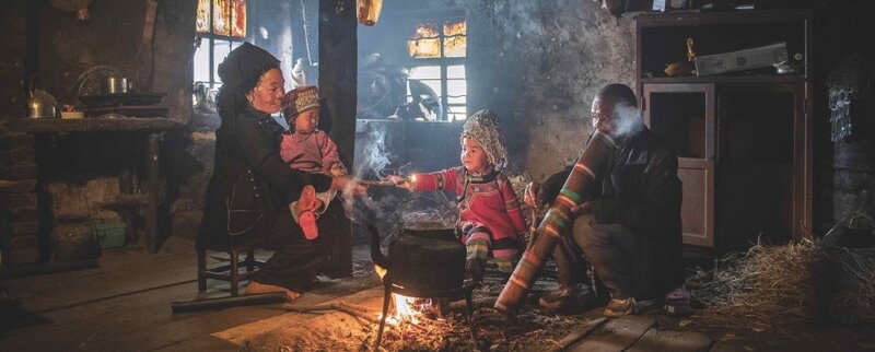„Dieses Bild zeigt einen schönen Moment der Intimität. Die Komposition der um ihr Hausfeuer versammelten Familie in Yuanyang, Provinz Yunnan/China versetzt den Betrachter in diesen magischen Raum. Der Fotograf folgte der Rolle des Fotojournalisten, der die Fliege an der Wand ist und den authentischen Moment vor der Kamera ablaufen lässt.“