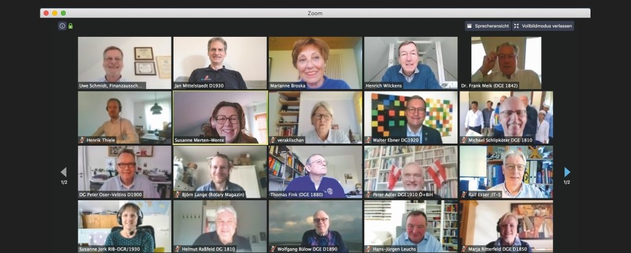 Das gab’s noch nie! Mehr als 50 acting Governors, Governors elect, Amtsträger, Verlagsmitarbeiter und weitere Teilnehmer begegneten sich am letzten Märzwochenende online zu einer virtuellen DGR-Tagung, die eigentlich analog hätte in Hildesheim stattfinden sollen – und bewiesen damit, dass Rotary auch in Zeiten von Corona handlungsfähig ist.