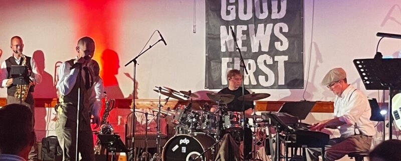 Zentraler Höhepunkt des Abends: Die 14-köpfige Band "Good News First" aus Vechta mit Bandleader Peter gr. Beilage vom RC Vechta. Mit ihrem druckvollen, vielseitigen Live-Sound rissen sie das Publikum sofort mit. Rock, Pop und Soul verschmolzen zu einer energiegeladenen Performance. Die Besucher waren begeistert von der Präsenz der Band, den kraftvollen Stimmen und dem satten Ensemble-Klang.