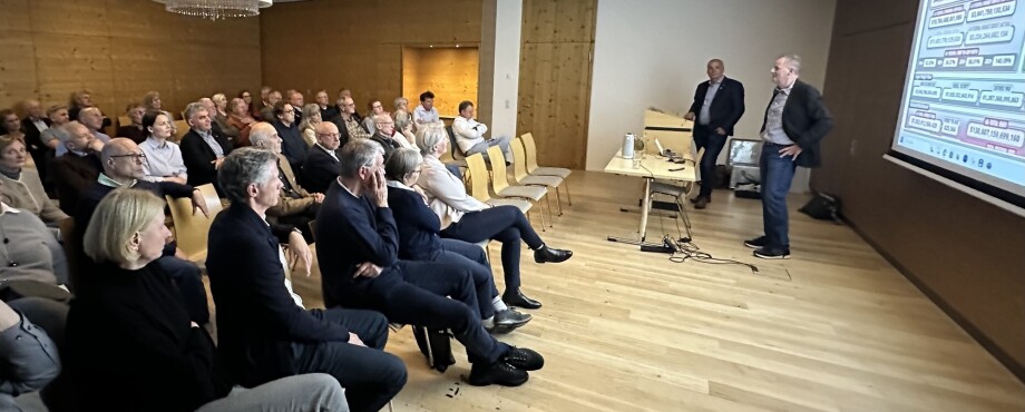 Die Zuhörer im Hofgut Farny konnten dagegen gut folgen. Mucksmäuschenstill lauschten sie dem Professor, der in ruhiger, teils amüsierter, teils besorgter Tonlage von der weltfinanzpolitischen Lage und deren Entwicklung sprach. "In einem Markt macht’s weniger, in einem anderen mehr Schaden", erklärte er. Trumps Hoffnung sei, die Produktion im Importland zu steigern. "Kannst du knicken!" Was fehle, seien die Fachkräfte. "Die USA haben gar nicht die Kapazitäten, die Produkte selbst herzustellen." Die Folge: Inflation.