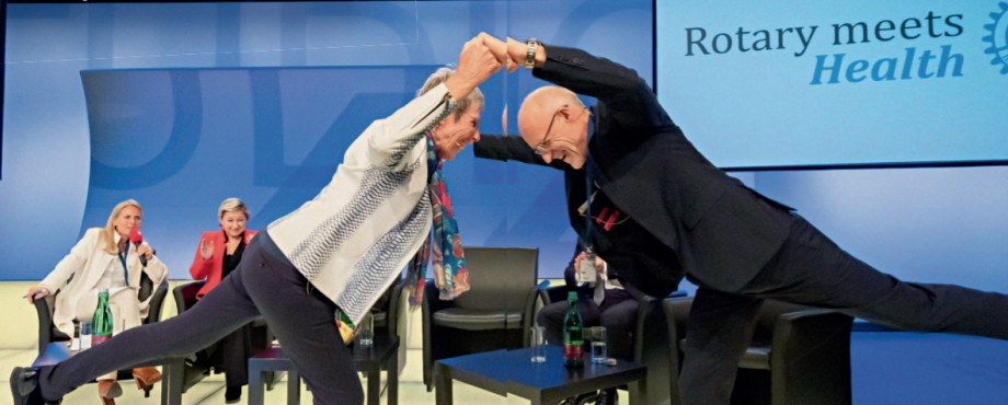 Die dritte Veranstaltung der von rotarischen Clubs aus Distrikt 1910 initiierten Bildungs- und Charity-Initiative „Rotary meets“ war dem Thema Gesundheit gewidmet. Auf dem Foto übt die frühere Eiskunstläuferin Trixi Schuba mit Toni Innauer, ehemaliger Skisprungstar, Paarlauf auf dem Trockenen …