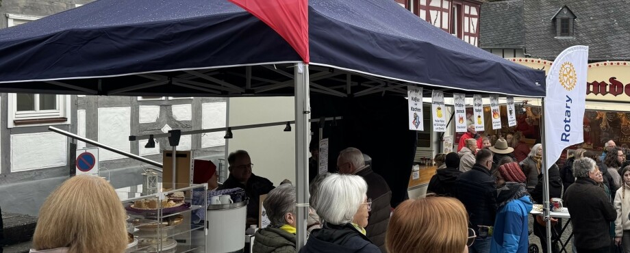 Die Rotarier hatten ihren Stand am 8. und 9. November an prominenter Stelle auf dem Herrsteiner Marktplatz des historischen Ortskerns, umgeben von wunderschön renovierten Fachwerkhäusern. Dort begrüßten sie ihre Besucher bei Kaffee und Kuchen, Glühwein, Punsch und diversen Kakaogetränken. Der Andrang und das Interesse waren groß und am Ende des zweiten Tages konnte Clubpräsident Dr. Christos Zigouris einen Spendenerlös in Höhe von etwa 2.500 Euro melden. Diese Summe kommt wie schon in den Vorjahren ganz den Impfaktivitäten zur Immunisierung gegen das Polio-Virus zugute.