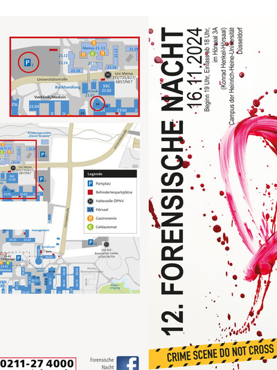 Am 16. November 2024 steigt wieder die unheimlich spannende und lehrreiche Forensische Nacht in Düsseldorf – schon zum zwölften Mal. Dann heißt es wieder: Stimmt das eigentlich, was man immer so im Krimi sieht? Sieht der Alltag eines Forensikers tatsächlich so aus? Und wie ist das mit den Untersuchungen an den Leichen wirklich? Zwei Rechtsmedizinierinnen und zwei Ermittler stehen als kompetente Gesprächspartner bereit.