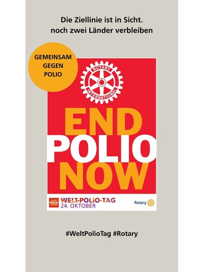 Der "World Polio Day – WPD" also der "Welt-Polio-Tag" am 24. Oktober, kündigt sich langsam an und viele Rotary Clubs gehen schon in die Feinplanung. Damit die "WPD"-Veranstaltung von allen sofort erkannt wird, braucht es die richtigen Signets, Logos, eben passgenaue Werbung mit dem Zeichen von End Polio Now, der rotarischen Aktion gegen die Kinderlähmung.