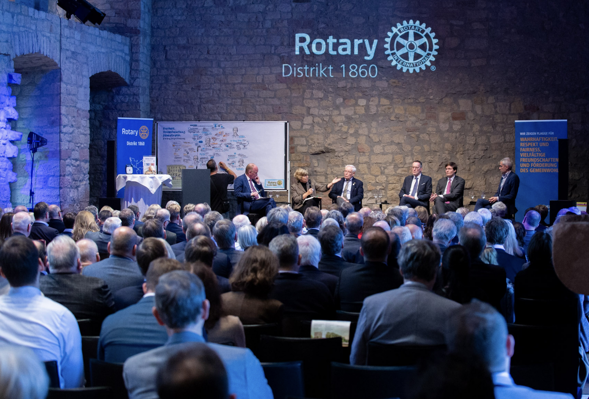Ebenfalls zu Gast: Politikwissenschaftlerin und Autorin Prof. Dr. Andrea Römmele ("Demokratie neu denken. Szenarien unserer Welt von morgen") und Prof. Dr. Hermann Schäfer, der zu Rotary in der Nazi-Zeit forscht