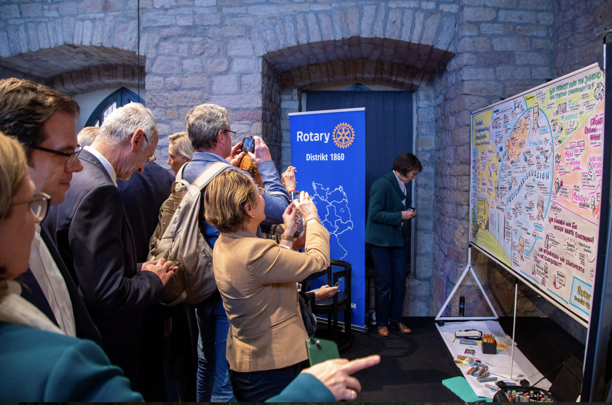 Recording graphic: Essentials der Veranstaltung wurden festgehalten – optisch. Ein Graphiker setzte das Thema "Rotary zeigt Haltung" direkt um: mit Zitaten und Eindrücken dieses Tages.