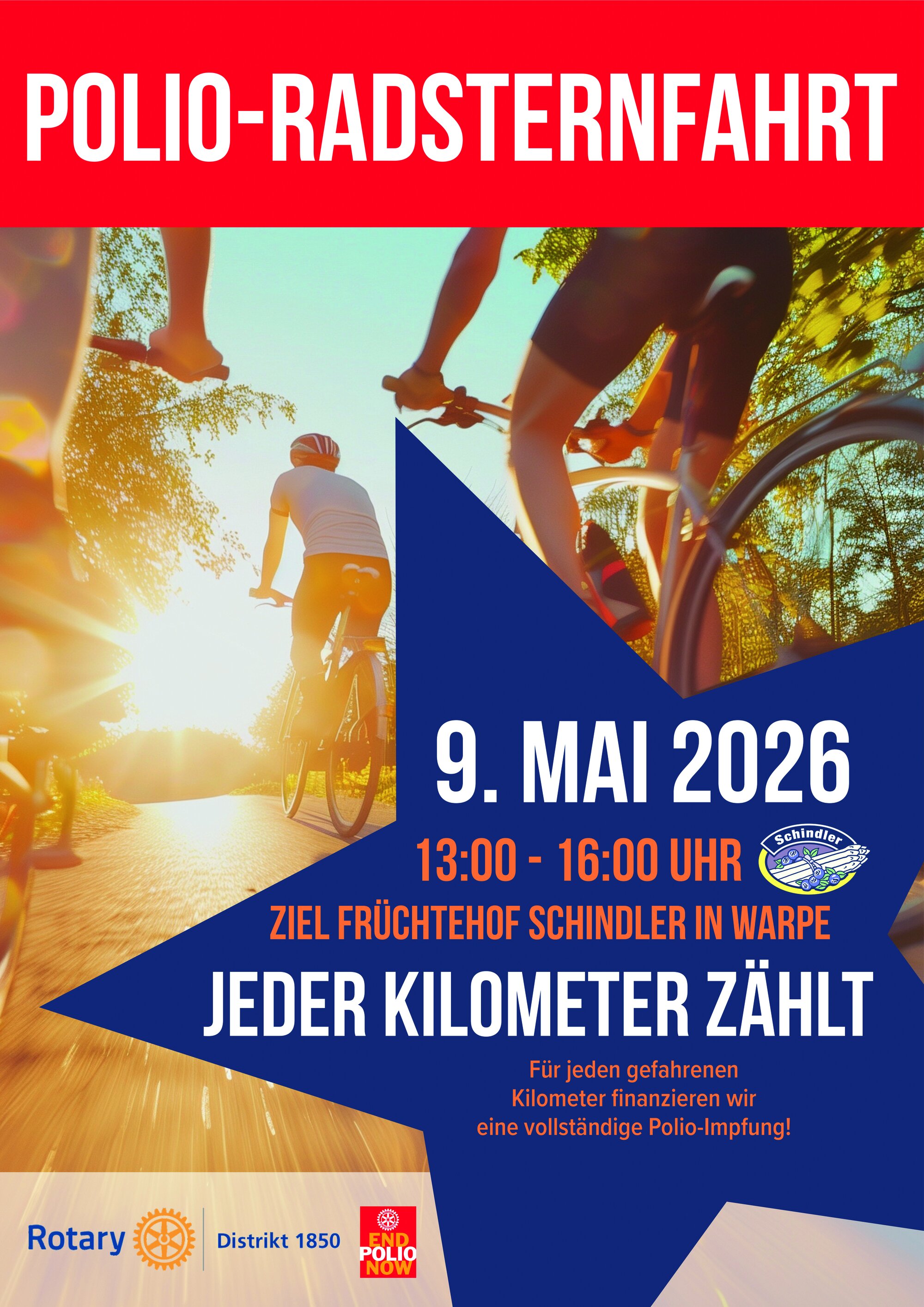 Zum Rotary Action Day 2026 am 9. Mai plant die rotarische Familie des Distrikts 1850 eine Sternfahrt zugunsten von Polio Plus und nutzt die Gelegenheit zum Schließen neuer Freundschaften.