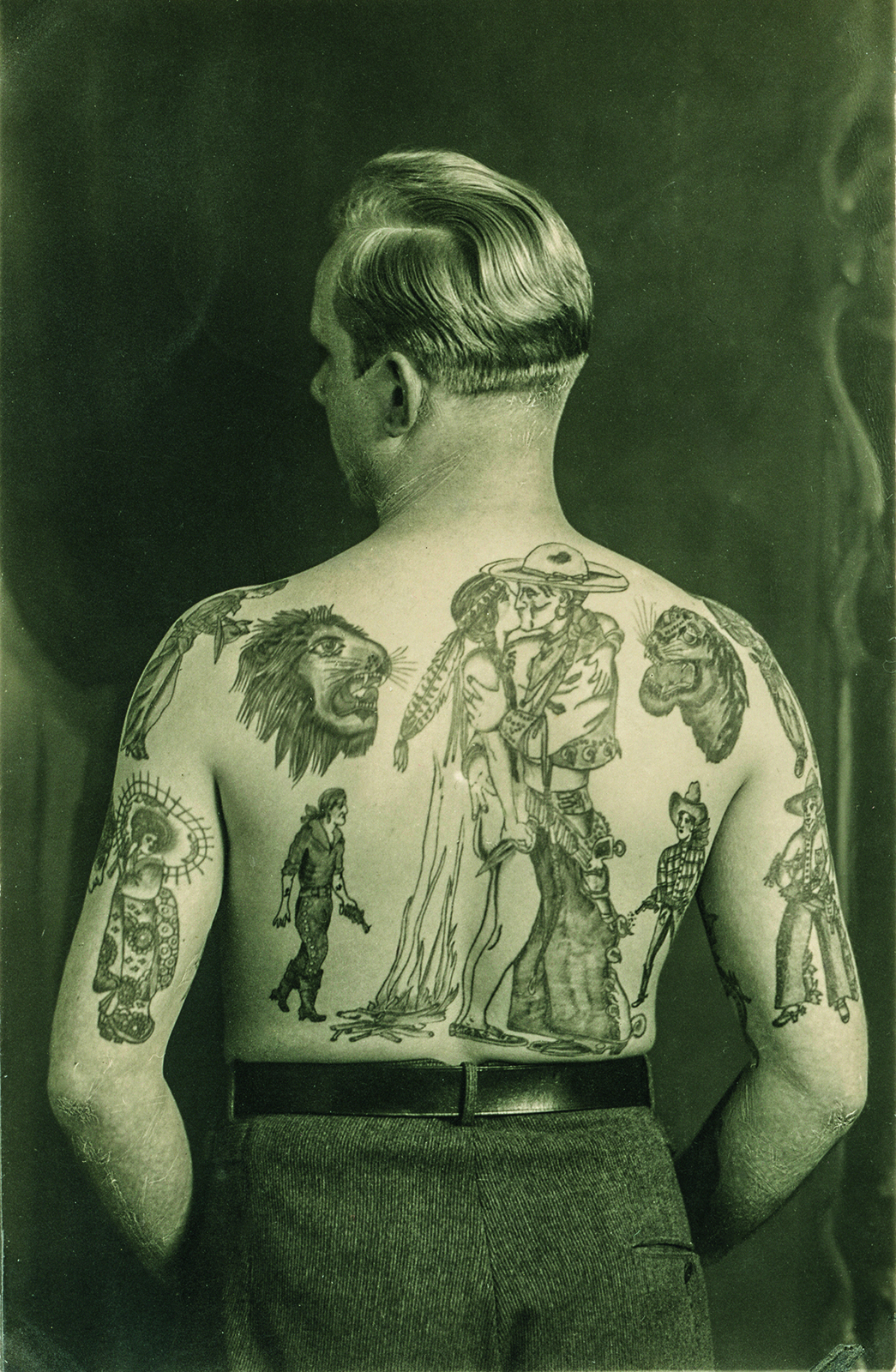 Natürlich gibt es Tätowierungen schon seit vielen Jahrhunderten, wenn nicht Jahrtausenden. Aber in westlichen Ländern wird diese Technik bis in die 1980er Jahre lediglich von wenigen Außenseitern gepflegt, von Seeleuten, Strafgefangenen oder Angehörigen von Motorradclubs. Und von einigen Künstlern, die sich selbst als extreme Freaks inszenieren und die Kunst und Leben unauflöslich ineinander zu verschmelzen versuchen: etwa von dem Industrial-Pionier Genesis P-Orridge oder von dem Schockrocker GG Allin, der sich zur Ergänzung seines verstörenden Erscheinungsbilds auf der Bühne Einläufe zu legen pflegt und seinen Kot in die ersten Publikumsreihen verspritzt.