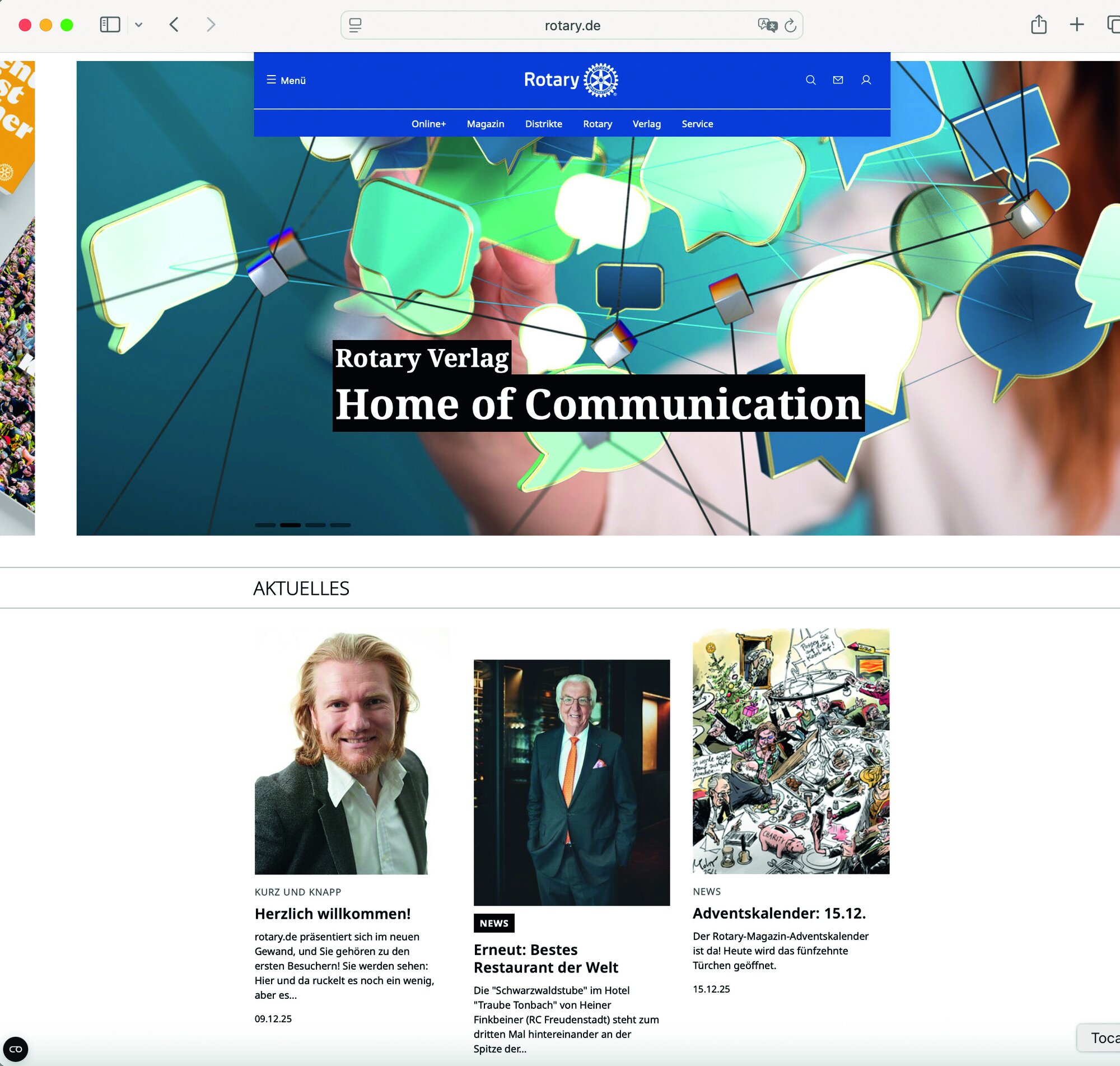 • Verlag: In diesem Bereich stellt sich Ihnen die Rotary Verlags GmbH als „Home of Communication“ für Rotary vor.