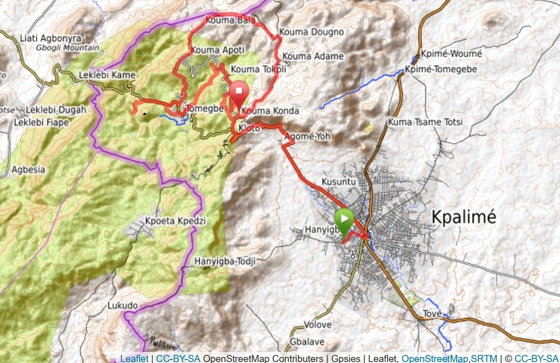 Im November 2022 war es soweit. Der von der NGO AGERTO (Association Germano-Togolaise) veranstaltete "Trail-Marathon des Papillons" startete am Sitz des Vereins in Kpalimé, ein Ort am westlichen Südrand des Grenzgebirgees zu Ghana, ca. 100 km nordöstlich von Lomé.
