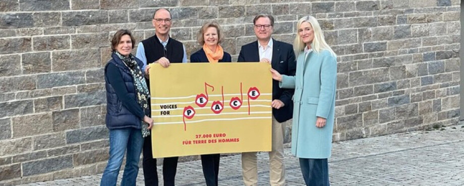 "Wir danken herzlich für dieses besondere Engagement der Rotarier für Kinder in Kriegssituationen." Mit diesen Worten hat sich Terre des Hommes bei den Freundinnen und Freunden der Rotary Clubs Kronberg, Kronberg-Victoria und des Rotaract Clubs Taunus bedankt. Die drei Clubs hatten im November 2024 mit "Voices for Peace" einen Benefizabend zu Gunsten von Terre des Hommes im Casals Forum Kronberg ausgerichtet. Es war ein besonderer Abend, der das Thema Frieden aus verschiedenen Blickwinkeln hör- und spürbar machte mit Musik, Podiumsdiskussion und persönlichen Impulsen.