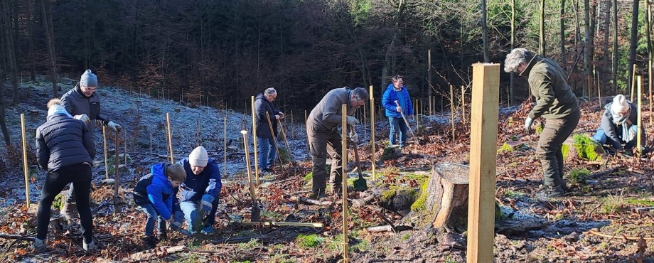 Zusammen mit Clubmitgliedern und Familienangehörigen hat er jetzt oberhalb des Bleichsees bei Löwenstein Hand bei der Pflanzung für das Forst-Projekt "Wald von Morgen" angelegt. Der Platz wurde von der Landesforstverwaltung beim Landkreis Heilbronn ausgesucht. Björn Hartmann und Tobias Hege ("Wir versuchen, die Menschen teilhaben zu lassen.") hatten die Fläche mit 250 Pfosten vorbereitet, an denen Douglasien eingegraben und festgemacht wurden.