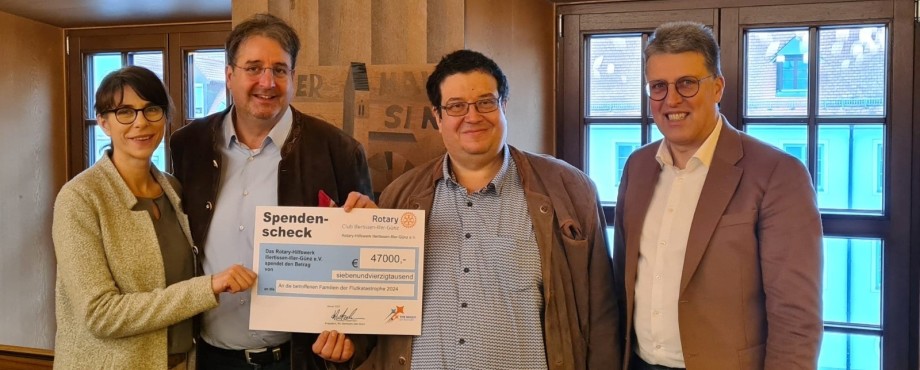 Die verheerende Flutkatastrophe in Babenhausen/Schwaben hat zahlreiche Familien hart getroffen. Um den Betroffenen schnell und unbürokratisch zu helfen, sammelte und verteilte der Rotary Club Illertissen-Iller-Günz gemeinsam mit den Rotary Clubs Euskirchen-Burgfey und Euskirchen insgesamt 47.000 Euro an Spenden.