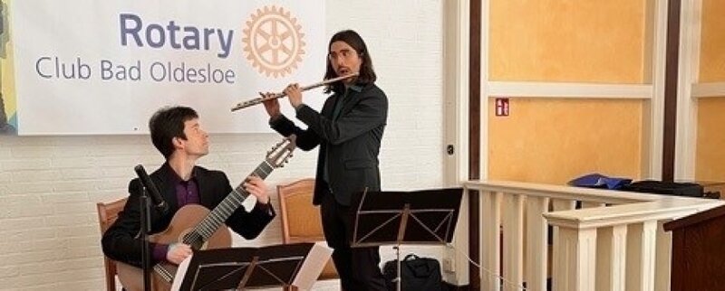 Der RC hat derzeit 29 Mitglieder und engagiert sich vor allem im internationalen Jugenddienst. 90 Jugendliche hat der Club seit seiner Gründung für ein Jahr in alle Welt geschickt. Genauso viele Austauschschüler aus fernen Ländern wurden für ein Jahr von Oldesloer Familien aufgenommen. Besondere Gäste der Charterfeier waren deshalb auch einige ehemalige Austauschschüler, allen voran Vítor Diniz aus Brasilien. Der junge Mann war 2001 in Bad Oldesloe, studierte später in Lübeck Musik und ist heute ein weltweit gefragter Querflötist und Lehrer an der Musikhochschule in Stuttgart. Gemeinsam mit dem Gitarristen Mateus Dela Fonte begleitete Diniz den Abend in der Kupfermühle musikalisch.