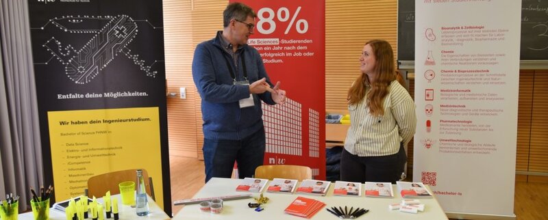 Zu Beginn der gut besuchten Veranstaltung berichteten drei Alumni des lokalen Gymnasiums in einer Talk-Runde über ihren Werdegang und ihre individuellen Erfahrungen an der Universität, an der Dualen Hochschule und dem Direkteinstieg in die Ausbildung und vermittelten den Besuchern wichtige Tipps für die Wahl des Studiums oder der Ausbildung beziehungsweise der Wahl der Bildungsinstitution. Parallel zu den Vorträgen informierten zehn Organisationen wie die Arbeitsagentur Lörrach, die IHK Hochrhein und die Handwerkskammer, Polizei und Bundeswehr sowie sechs Universitäten und Hochschulen aus dem In- und nahen Schweizer Ausland an Thementischen in der Aula des Gymnasiums in persönlichen Gesprächen über konkrete Ausbildungs- und Studienmöglichkeiten.