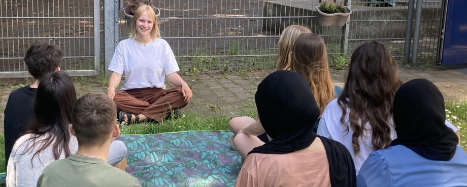 „Heute habe ich mich endlich mal gefunden.“ Camill horcht ein bisschen in sich hinein, als er das sagt, nachdem er zusammen mit sieben anderen Neuntklässlern der Marie-Colinet-Sekundarschule Hilden ein kurzes Achtsamkeitstraining absolviert hat. Es ist das vierte von zehn Modulen einer Arbeitsgemeinschaft (AG), die unter dem Motto „Be your own superhero“ Jugendliche in die Lage versetzen soll, schwierige Aufgaben und Herausforderungen zu meistern.