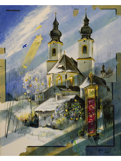 --> zeigt die Kirche in Aschau i. Chiemgau, die gemalt wurde von Walter Angerer d.J. – langjähriges Mitglied des RC Traunstein