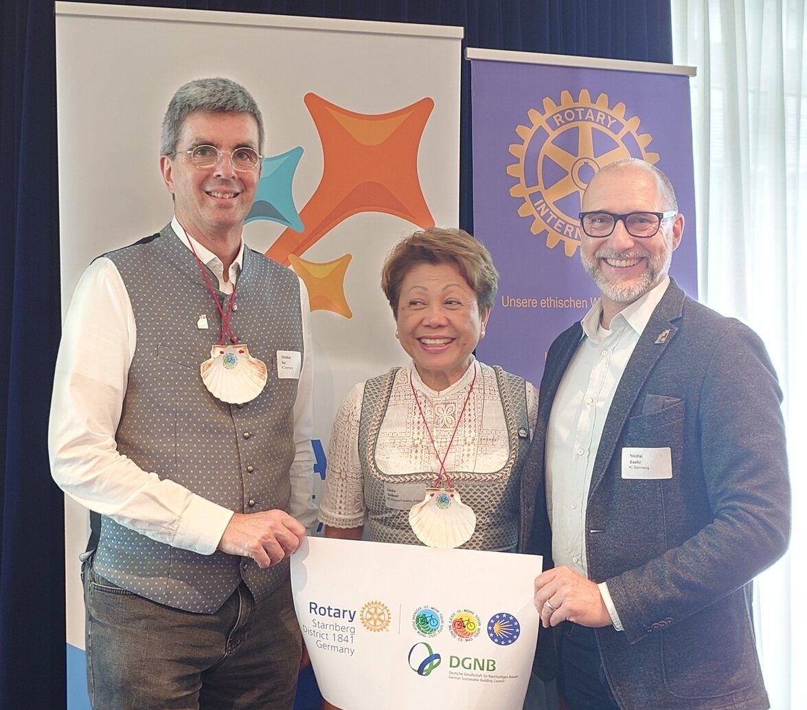 Am 3. Juli 2025 starteten Nicolai Baehr, Past-Präsident des Rotary Clubs Starnberg, und Robert Cramer eine Reise von Club zu Club und reisten von Deutschland über Österreich und die Schweiz ins Fürstentum Liechtenstein. Von dort geht es weiter durch Frankreich und Spanien nach Portugal, wo sie dem Jakobsweg folgen werden. Auf dem Rückweg werden sie das Vereinigte Königreich, Belgien und die Niederlande besuchen. (Die Vortragsreihe wird in Deutsch, Schwyzerdütsch, Französisch und Englisch angeboten).