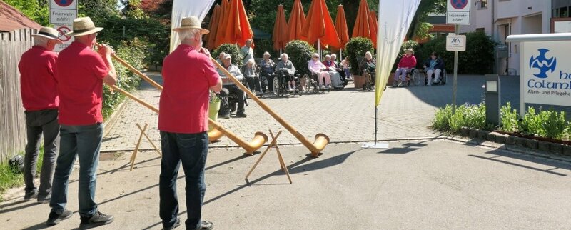 Mit ihren Alphörnern erfüllten Freund Bernd Vetter und zwei Kollegen in einem Open-Air-Konzert die Luft mit kraftvollen, harmonischen Klängen und zauberten den zahlreichen Zuhörern auf den Balkonen und im Vorgarten der Heime ein Lächeln ins Gesicht. Die traditionellen Naturinstrumente der Schweizer Alpen mit ihren tiefen, warmen Tönen schufen eine besondere Atmosphäre und brachten Ruhe und Freude zugleich. Der große Beifall der Zuhörer zeigte, daß Musik eine Brücke zwischen den Generationen bauen kann und Momente des Glücks schenkt. Es war auch für die Rotarier ein bewegender Tag, der zeigte, wie wichtig solche kulturellen Erlebnisse für die Bewohner der Heime sind.