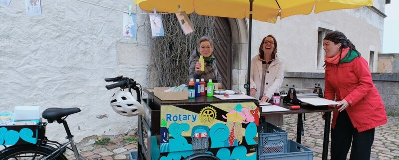 Das Thema Kunst liegt Clubpräsidentin Christiane Steck besonders am Herzen, sie ist Textildesignerin. Deshalb war sie bereits seit Beginn ihrer Amtszeit auf der Suche nach einem Projekt, das Kunst und Kultur auf innovative Weise zugänglich macht. „Es freut mich sehr, wenn Kunst durch mobile Transportmittel besonders den Kindern nähergebracht werden kann“, sagt Steck begeistert. Die Idee für das Projekt ArteMobil entstand im Verein Kinder und Kunst Heidenheim (Kiku), begleitet von Romina Ferrarotti, Spezialgebiet Druckgrafik, sowie Anja Marrack, Leiterin des Bereichs Bildung und Vermittlung für alle städtischen Museen Heidenheims.