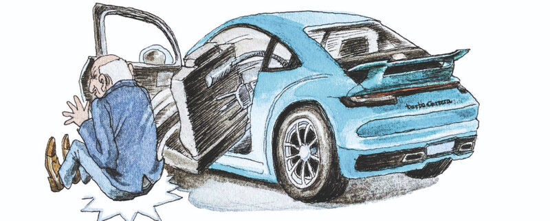 Begeistert waren die Porsche-911-Fahrer unter den Clubmitgliedern, die ja meist älteren Datums waren. Sie kamen noch leidlich rein ins enge Cockpit, aber kaum wieder raus. Ihnen schenkte der Club das Senioren-Exit-Set. Fortan drückten die Porsche-Rotarier bei Ankunft am Ziel neben dem Fahrersitz einen Knopf, der Sitz hob sich, die Tür ging auf, der Sitz stellte sich schräg, und per Luftdruck wurde man automatisch ins Freie befördert.
