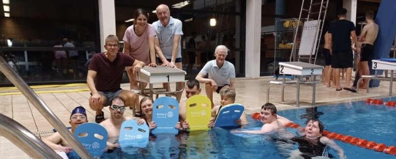 Obendrein hat das Fluthilfe-Team ein Kontingent der Schwimmbretter Rotary Clubs überlassen, die aktuell Schwimmprojekte betreuen. Die Clubs Lübbecke und Paderborn-Bürener Land haben kürzlich die ersten Exemplare an ihre Projektpartner übergeben können. In Lübbecke betreut der Club seit vielen Jahren eine Gruppe behinderter Jugendlicher, die schon an zahlreichen Wettkämpfen erfolgreich teilgenommen haben. "Besonders wichtig ist uns die Nachhaltigkeit und die Förderung junger Menschen mit Behinderung", bemerkt Joachim Straßburg, Betreuer des Lübbecker Schwimmprojekts.